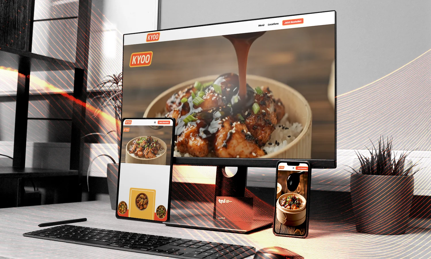 Das Ergebnis ist eine moderne, markenstarke Webseite, die KYOO als visuell eigenständiges Food-Konzept positioniert und das Produkterlebnis digital so vermittelt, wie es für eine mobile Zielgruppe heute entscheidend ist: schnell, hochwertig, emotional und klar geführt. Das Zusammenspiel aus Design, Bewegung und responsiver Präzision sorgt dafür, dass die Marke auf allen Endgeräten konsistent wahrgenommen wird und die angebotenen Produkte sofort im Mittelpunkt stehen.